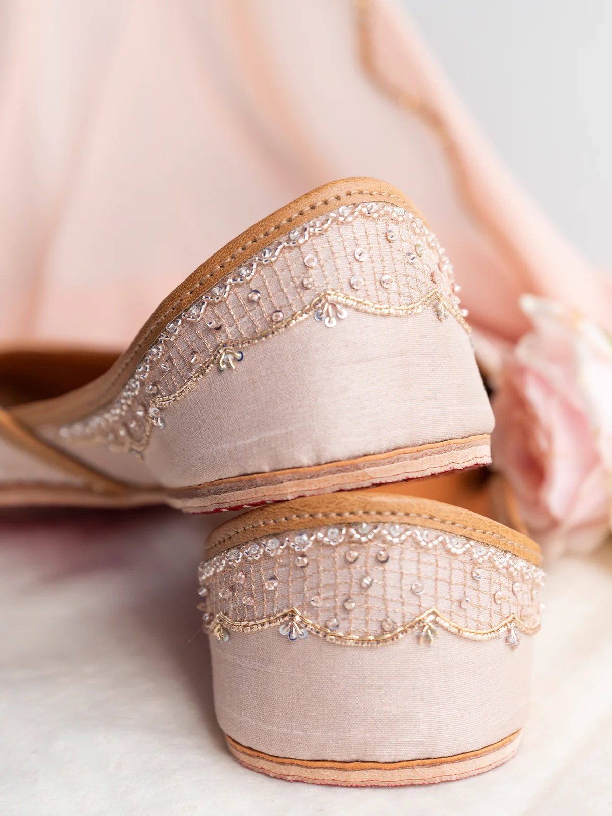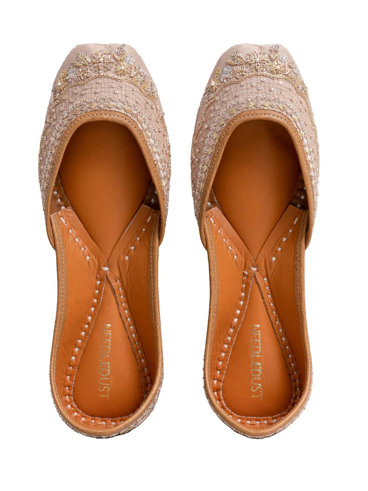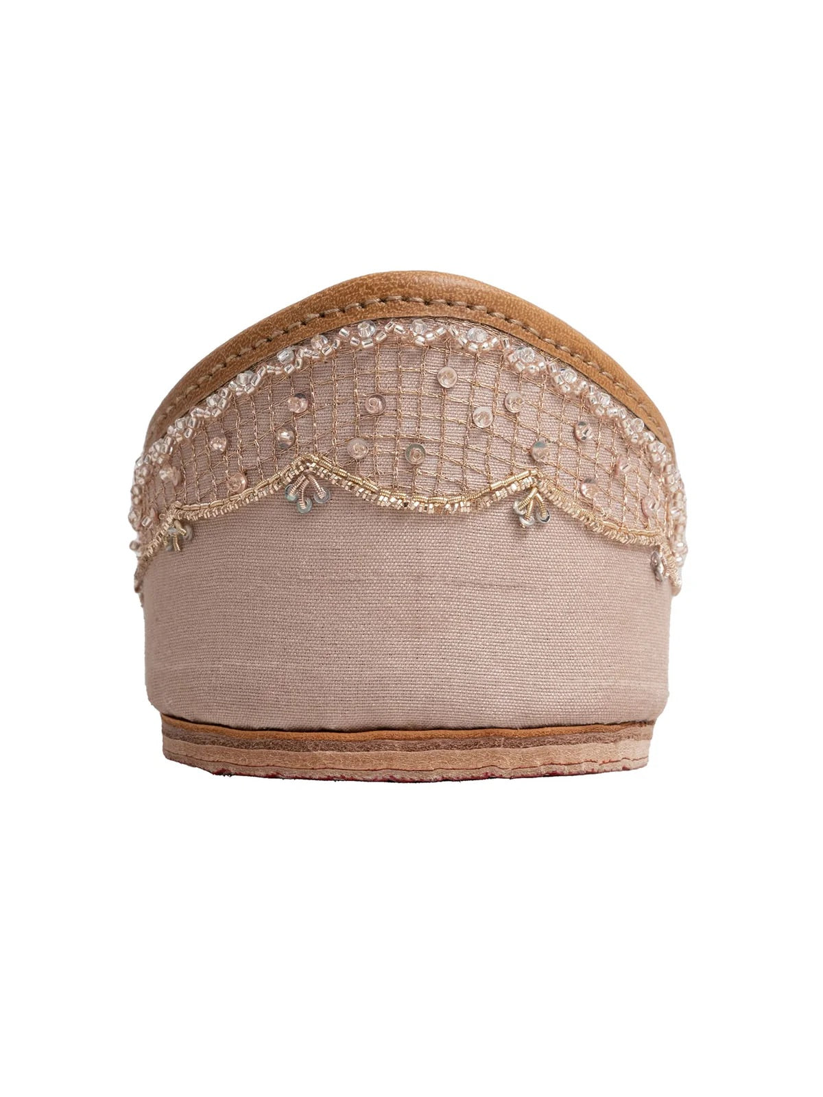 She’s soft, minimal, elegant and her shoe must reflect her personality- then Dali is for her! A champagne silk base with a a beautiful jaali pattern crafted in shimmering shades of rose gold, gold and silver in high grade glass beads, sequin and dabka.